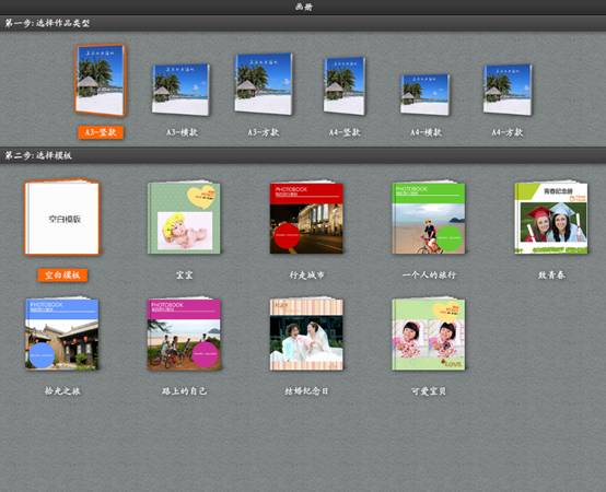 选择左侧或者制作区的印品(以画册为例),双击即可进入模版选择页面。